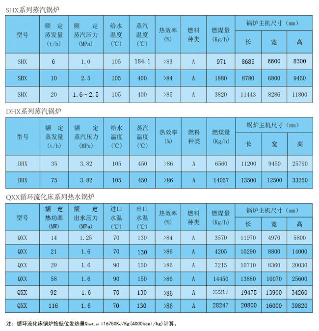 我公司生產的循環流化床鍋爐系列產品有6t/h、10t/h、20t/h、35t/h、75t/h、120t/h、240t/h蒸汽鍋爐、7.0MW、14MW、21MW、29MW、46MW、58MW、92MW、116MW熱水鍋爐。我公司的循環流化床產品是我公司和中國科學院熱能物理研究所、哈爾濱工業大學聯合開發的具有國內先進水平的新產品。循環流化床鍋爐具有煤種適應性廣、燃燒效率高、負荷調節范圍寬、可爐內脫硫、脫硝、NOx排放量低、環境保護好、灰渣可綜合利用等特點??蓮V泛應用于熱電聯產和集中供熱事業。